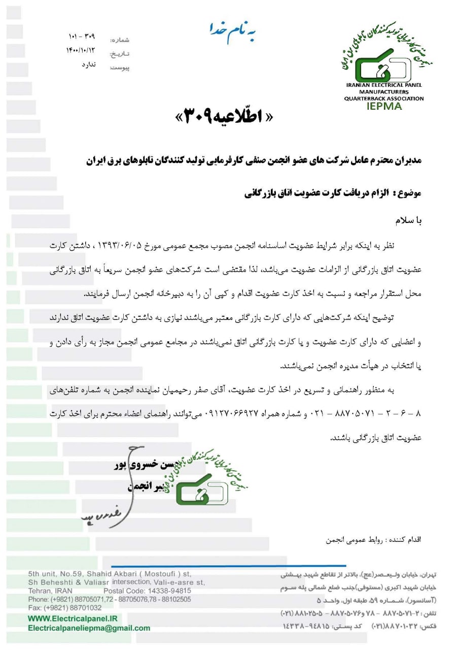 الزام دریافت کارت عضویت اتاق بازرگانی - اطلاعیه شماره 309