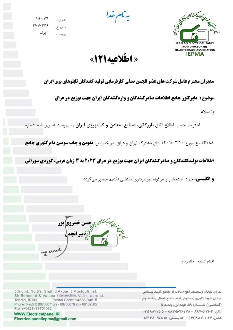 دایرکتور جامع اطلاعات صادرکنندگان و واردکنندگان ایران جهت توزیع در عراق 2023 - اطلاعیه شماره 121