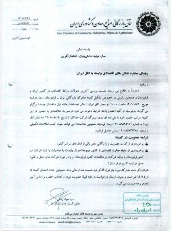 نامه اتاق ایران در خصوص " تشکیل کمیته مشترک بازرگانی ایران - قرقیزستان در روز دوشنبه مورخ1401/05/10 " جهت استحضار و بهره برداریی تقدیم حضور میگردد.