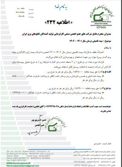 تمدید قرارداد بیمه تکمیلی درمان گروهی - اطلاعیه شماره 312 پیوست شماره 1