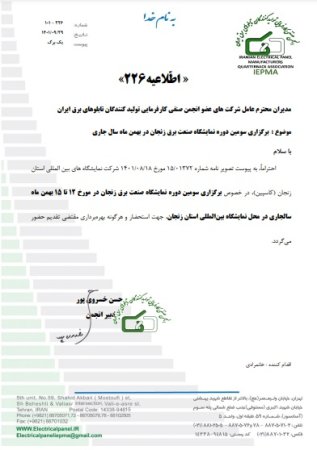 برگزاری سومین دوره نمایشگاه صنعت برق زنجان در بهمن ماه سال جاری - اطلاعیه 226