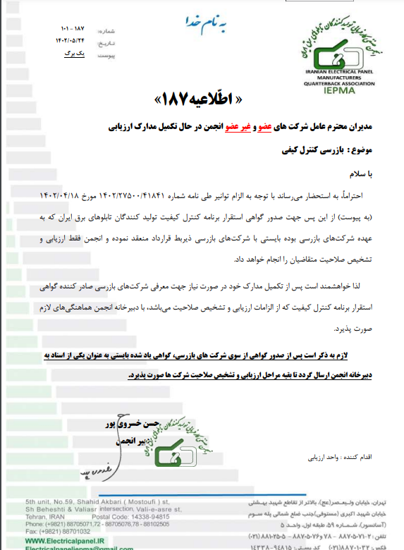 اطّلاعیه 228 باستحضار مدیران محترم عامل شرکتهای حاضر در وندور لیست شرکت محترم توانیر