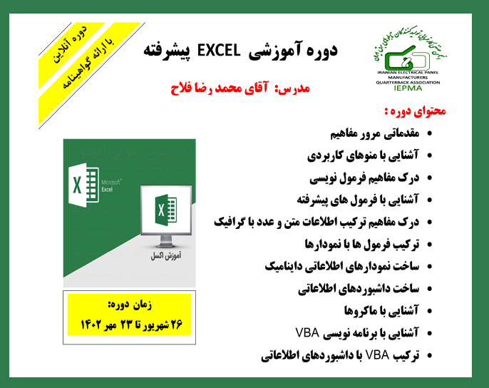 برگزاری دوره آموزشی "EXCEL پیشرفته "در شهریور و مهر ماه سال جاری اطلاعیه201