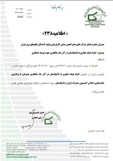 اعزام هیات تجاری به تاجیکستان در مورخ آبان ماه سال جاری اطلاعیه227