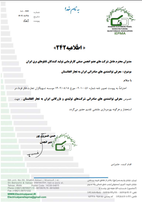 حضور هیأت تجاری از افغانستان و دعوت به دومین شو روم و نشست تجاری B2B ایران و افغانستان - اطلاعیه229