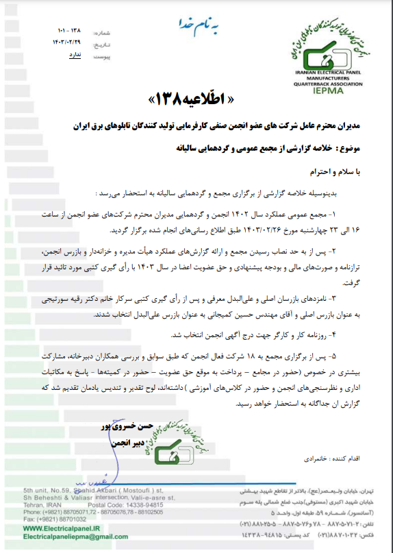به حد نصاب نرسیدن مجمع عمومی سالانه 1401 (نوبت دوم) انجمن اطلاعیه185