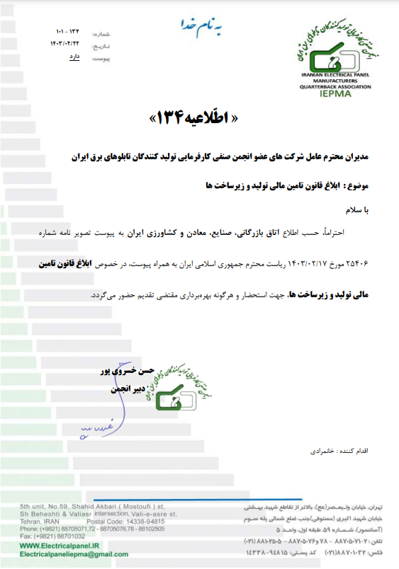 اطّلاعیه 203 ، حسب اطلاع اتاق بازرگانی، صنایع، معادن و کشاورزی ایران به پیوست تصویر تصویبنامه شماره