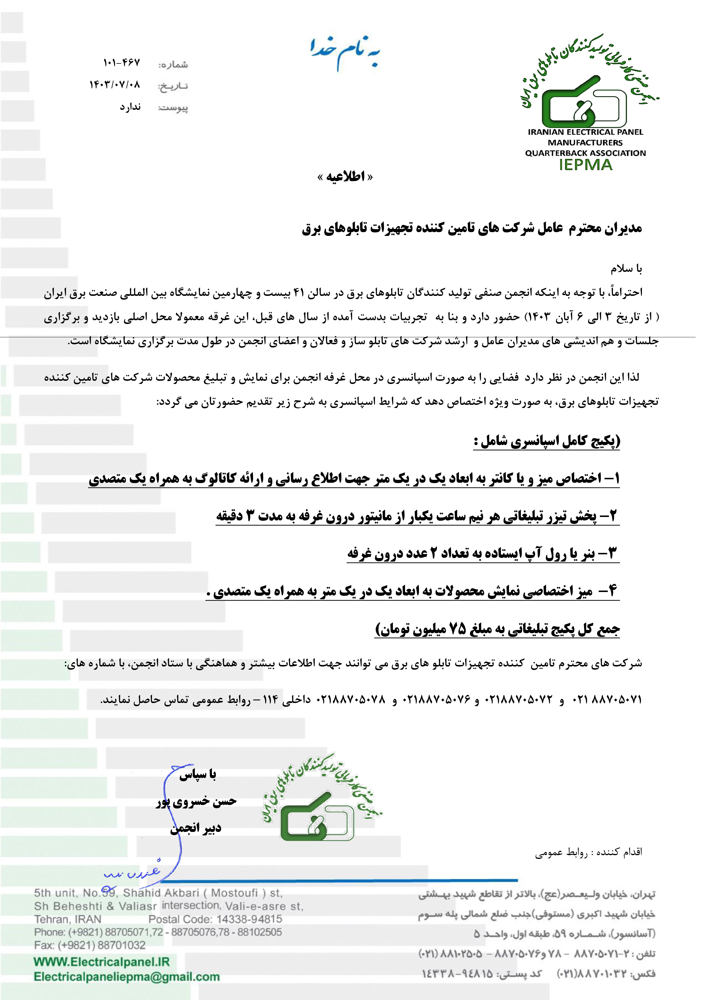 اطلاعیه اسپانسری 24 نمایشگاه بین المللی صنعت برق ایران