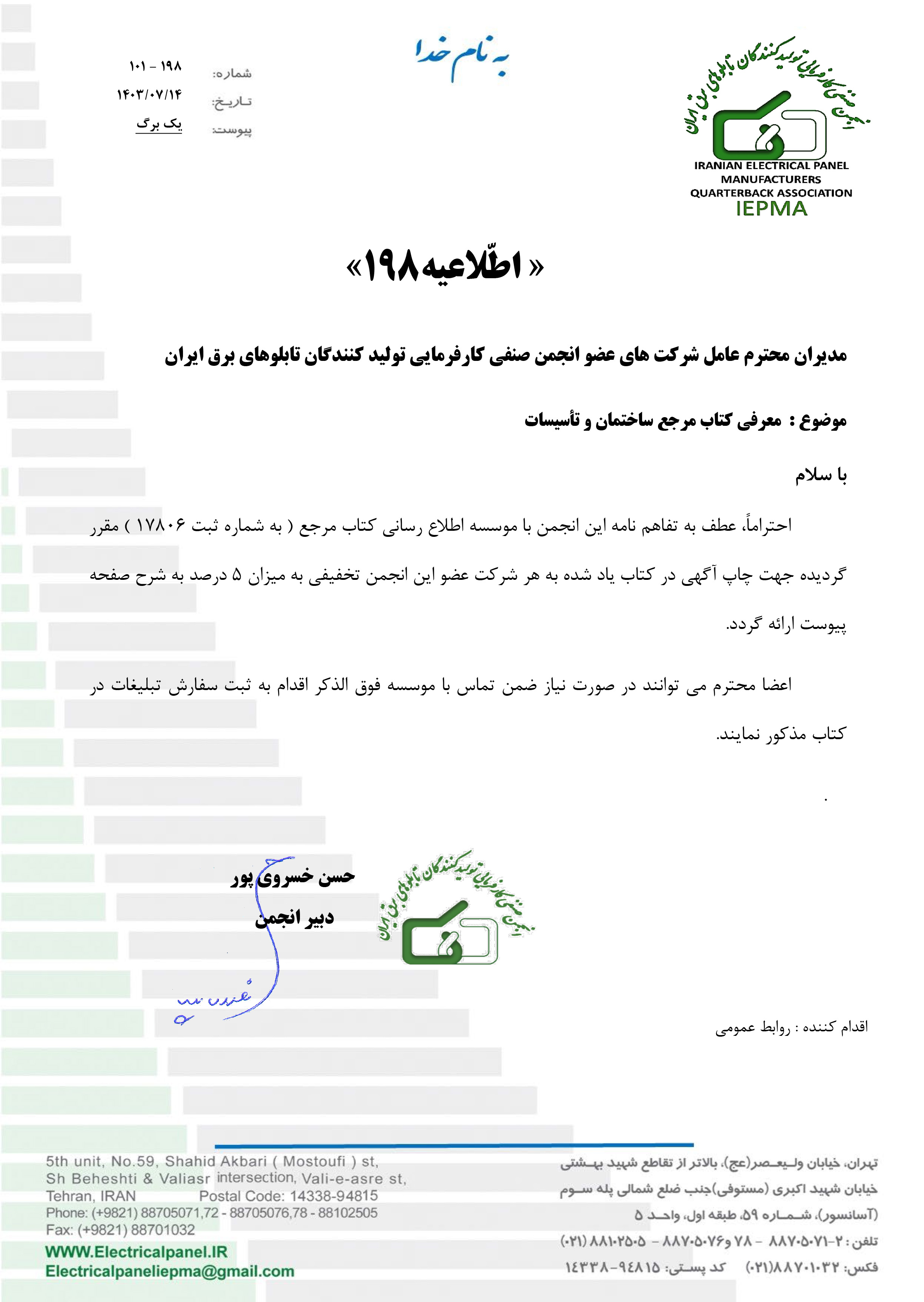 اطلاعیه شماره ۱۹۸ در خصوص معرفی کتاب مرجع ساختمان و تاسیسات